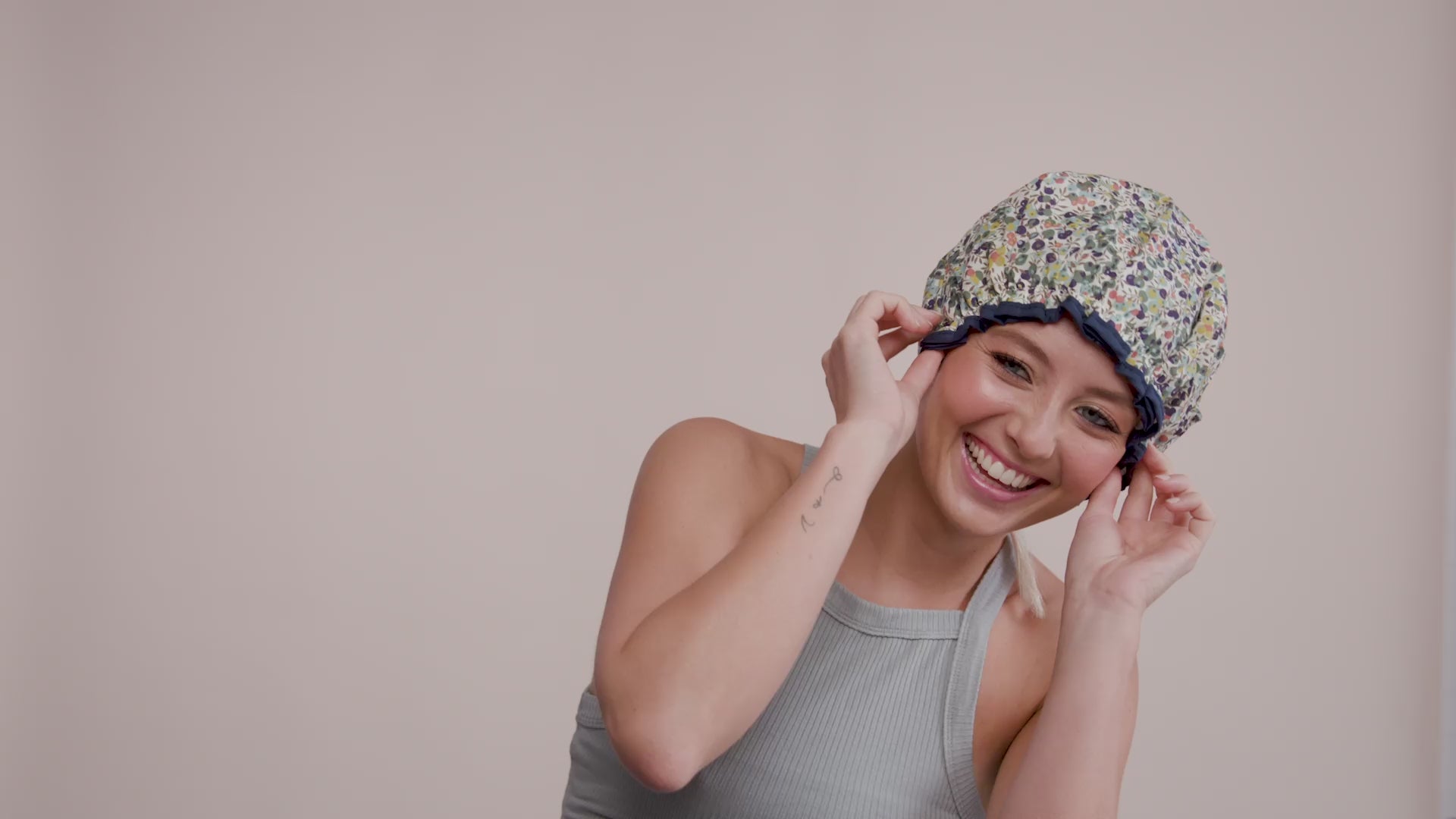 Bloom's Shower Cap will keep your tresses tucked away and brighten any shower time! Features cotton fabric from the Liberty fabric range and a soft, waterproof lining. Includes a fabric loop for convenient air drying.